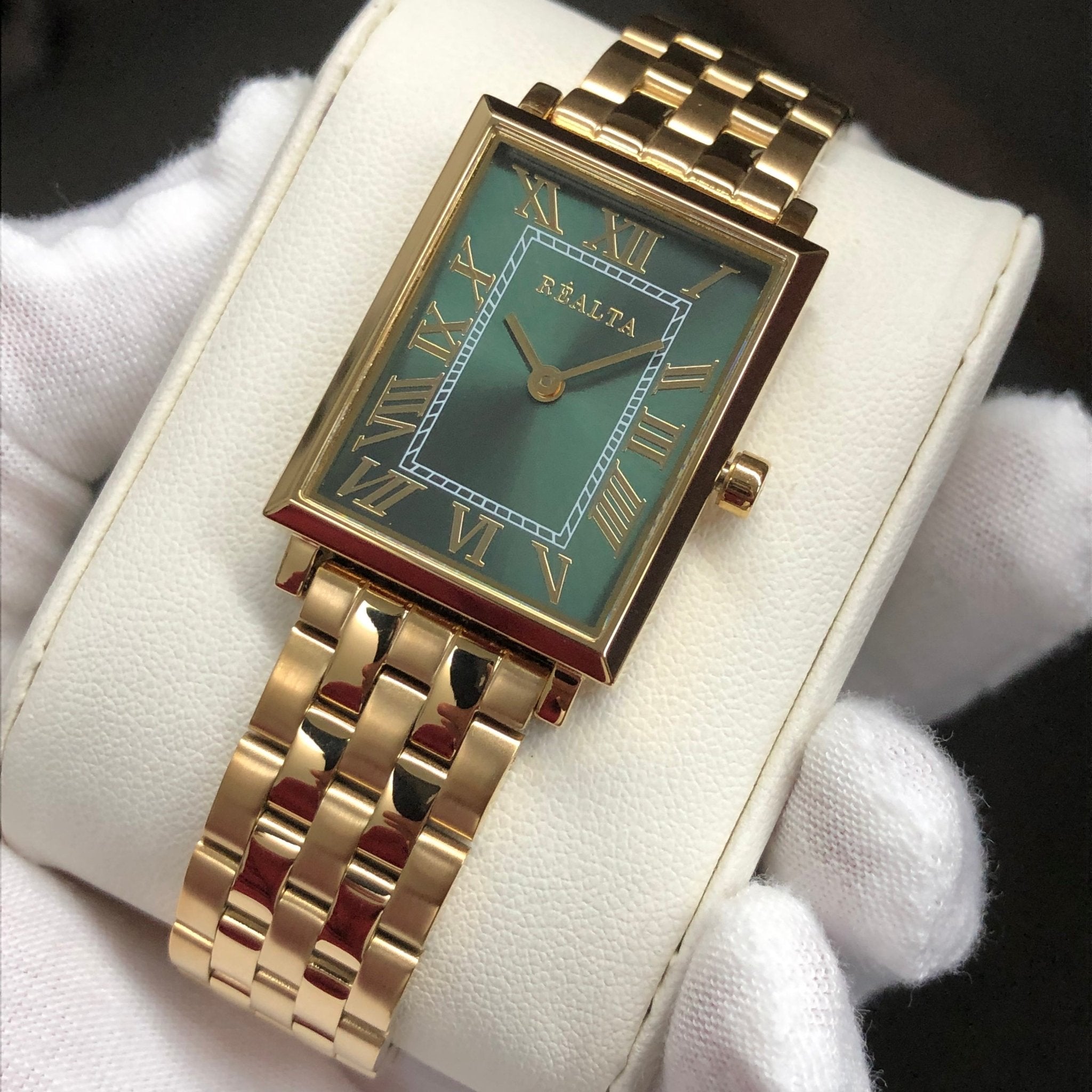 This timepiece is meticulously crafted from stainless steel with 18k gold plating, featuring a Miyota Japanese Quartz movement and Sapphire Glass.